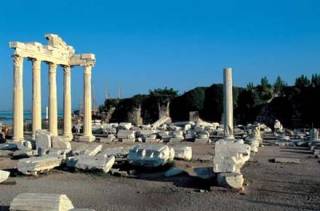Antalya’ya 75 km. Manavgat’a 7 km. uzaklıkta olan Side, Yaklaşık 400 m. eni ve 1 km. uzunluğu olan bir yarımada şeklindedir. “Side” adı Anadolu dilinde “Nar” anlamına gelmektedir. Bu özellik ve bilgede bulunan bazı yazıtlardan elde edilen bilgiler Side tarihinin Hititlere kadar uzandığını göstermektedir. Fakat Anadolunun en eski yerleşim birimlerinden biri olan Side’nin İ.Ö.VII yy’dan önce kurulduğu da söylenmektedir. Anadolu tarihleri içerisinde Side, diğer Pamphylia kentleriyle aynı aşamaları geçirmiştir. Yunanlılar İ.Ö. VII yy. göçler sırasında Side’ye gelmişlerdir. Eldeki yazıtlara göre İ.Ö. III yy’ a değin de kente özgü bir dil konuşmuşlardır. Hala tam olarak çözülemeyen bu dil Hint-Avrupa dillerindendir. Side İ.Ö. VI yy’ın ilk yarısında Lidyalıların, İ.Ö. 547-546′da da Persler’in egemenliğine girmiştir. Pers yönetiminde gelişen kent. İ.Ö. 334′ de İskender’e teslim olunmuştur.İskender’in ölümünden sonra Antigonos’un (323-304). Ptolemaioslar’ın (301-215).